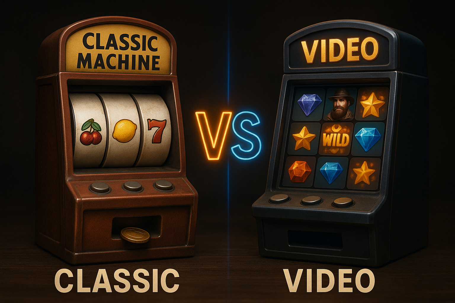 Klasične slot mašine imaju tri kolone i jednostavne simbole, dok video slotovi imaju pet ili više kolona, bonus funkcije i bogatu grafiku.